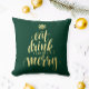 Christmas Eat Drink & be Merry Green Throw Pillow. A festive Christmas graphic Pillow featuring modern script typography with "Eat Drink & be Merry" saying.