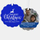 Discover the essence of a serene holiday season with our "Midnight Blue Minimalist Reindeer Christmas Ornament." Crafted for lovers of understated elegance, this card captures the tranquil joy of Christmas with a crisp, leaping reindeer silhouette against a deep blue backdrop.