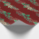 Christmas Elegant Burgundy Gold Holly Berries Wrapping Paper