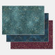 Elegant festive luxury chic Christmas Gift Wrapping Sheets in three colours: festive green, dark blue, and deep burgundy red with gold - coloured (no real gold effect) stars pattern.