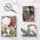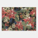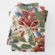 Christmas and winter wrapping paper sheets depict elegant hand painted floral designs with red and gold poinsettia flowers, holly leaves, berries and evergreens._