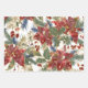 Christmas Elegant Red Gold Poinsettias Evergreens Wrapping Paper Sheet