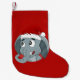 Christmas Stocking with illustration of a head of cute little elephant with Santa's hat, Christmas holidays design for children,illustrated by Radka Kavalcova