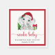 Christmas holiday season napkins for your baby girl shower featuring "Santa Baby" in a stylish red script with swashes and a cute watercolor illustration of a baby girl elephant with a Santa hat, a red and green candy cane and presents. Add the mother-to-be's name and shower date in simple modern typography.