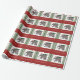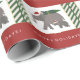 These trendy and cute Christmas elephants, a parent and little baby elephant, are returning home with their perfect Christmas tree. Both are totally in the holiday spirit with matching Santa hats! The rest of the design features a green stripes design, and a red rectangle at the bottom. Thin lines of gold foil decor line the edges. (Please note the wrapping paper does not contain actual gold foil, just the look of it.) The text says "Happy Holidays", but you can easily change the message on the wrapping paper by using the template.