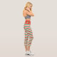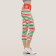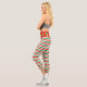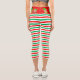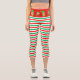 Modern, cute Christmas elf on gree, red and white striped Leggings.