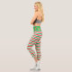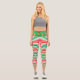 Modern, cute Christmas elf on gree, red and white striped Leggings.