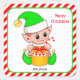 Cute Christmas elf and custom name with red and white frame Sticker.