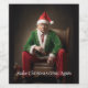 A portrait picture from Donald Trump sitting in a brown leather chair wearing a Christmas elf costume