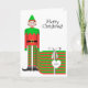 Merry Christmas! A folded greeting card with a Christmas elf, stripes version. Customise the greeting card with your own text and name among several other options.