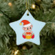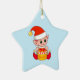 Cute Christmas elf holding a gift box on light blue Ceramic Ornament.