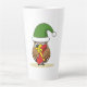 An illustration of a shy happy elf owl with green santa hat and red present with yellow ribbon. This cute cartoon design is a gift idea for owl lovers, bird lovers, and fantasy or magical movie lovers. Are you excited to receive your gift on Christmas?