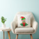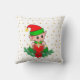 Cute Christmas baby elf, pine, poinsettia & golden stars on white background Throw Pillow.