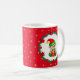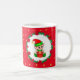 Christmas elf, pine wreath, poinsettias & stars coffee mug