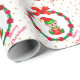 Christmas elf, pine wreath, poinsettias & stars wrapping paper