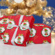 Christmas elf, pine wreath, poinsettias & stars wrapping paper