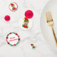 Cute Christmas baby elf, pine wreath and Christmas balls Table Confetti. Text can be personalised.