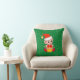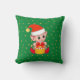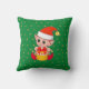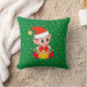 Cute Christmas baby elf & golden stars on green background Throw Pillow.