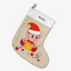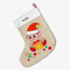 Christmas elf with Christmas balls on beige Large Christmas Stocking