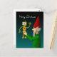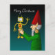 Christmas elf with the waving robot from Santa Claus Workshop on a Christmas Postcard.