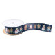 Popular Christmas characters including Santa, elves, snowman and reindeer on navy blue ribbon