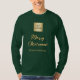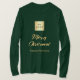 An emerald green t-shirt for Christmas, golden text. Personalise and add your business logo, a name. Text: Merry Christmas