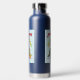 The bottle looks even better in real life. The ice cubes I put in lasts all day! I have my bottle with me all the time. It's summer and having something cold to drink feels amazing. With this bottle I always have something super cold. I have only tried the hot drink once and it lasted a long time as well. The color blue is a navy blue and the white printed on it is vibrant. It printed perfectly. I love my personalized smile water bottle.
