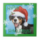 Celebrate the holiday season with a happy Entlebucher Mountain Dog wearing a Santa hat amid snowflakes and the words, Happy Howlidays! Great holiday gift idea for Entle-loving family and friends.