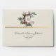 Vintage, elegant, gold, monogrammed Christmas envelope, with holly branches and return address.