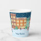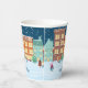 Cute Holiday paper cups with people going around town and a text saying "Merry Christmas" . Add a lid if you wish .