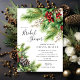 This elegant winter holiday bridal shower invitation features gorgeous evergreens with holy berries and pinecones. The invitation is perfect for celebrating the upcoming bride during the holiday season. The overall design is festive and sophisticated, and the invitation is sure to impress your guests.