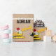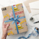 A cute illustration of a yellow toy excavator wearing a Santa hat and decorated in Christmas lights digging up some Christmas gifts with words "Merry Christmas" and your custom name on a kraft brown paper look background. Perfect for construction truck lovers of all ages. An ideal Christmas wrapping paper for excavator truck enthusiasts big or small, girls or boys. Customise the name and make it your own.