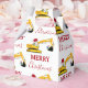 A cute illustration of a yellow toy excavator wearing a Santa hat and decorated in Christmas lights digging up some Christmas gifts with words "Merry Christmas". Perfect for construction truck lovers of all ages. An ideal Christmas favour box for excavator truck enthusiasts big or small, girls or boys.