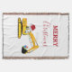 A cute illustration of a yellow toy excavator wearing a Santa hat and decorated in Christmas lights digging up some Christmas gifts with words "Merry Christmas". Perfect for construction truck lovers of all ages. An ideal Christmas blanket for excavator truck enthusiasts big or small, girls or boys.