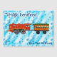 A repurposed German Marklin O scale model steam engine and passenger car, circa 1940's. The engine has been digitally given a new colour scheme for Christmas while retaining its character. Dutch text reading, "Vrolijk kerstfeest" also appears. Add your own additional text.