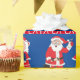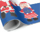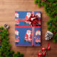 Fa, la, la, la, la with Santa and Mrs. Clause. With a blue background and stripes, this decorative wrapping paper is perfect for all your Christmas gifts.