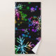 Christmas falling various neon colours snowflakes SlipperyJoe artistic gay pride gifts LGBTQIA dark background vibrant winter vibrant colourful digital illustration blue green pink yellow multicolored bokeh lights festive lively atmosphere depth dimension hanging thin lines black background