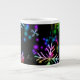 Christmas falling various neon colours snowflakes SlipperyJoe artistic gay pride gifts LGBTQIA dark background vibrant winter vibrant colourful digital illustration blue green pink yellow multicolored bokeh lights festive lively atmosphere depth dimension hanging thin lines black background