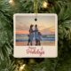This is a lovely ornament, and great that you personalise the back with details of birthday, weight, etc.. My only tiny disappointment is the "My First" doesn't stand out very well on the background. More than happy with the printing of the photo and the writing on the back.