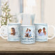 This 3-photo Christmas mug makes a perfect gift for grandparents, parents, and other family members. You can easily change the photos and add your own personal message, or use the one provided. A beach wood background and “Seas & Greetings” adds a coastal touch.