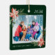 This Christmas ornament makes a great annual holiday keepsake, with family photo and name, and the year, easily customised. Festive Christmas sprigs of holly, pine, and poinsettia frame the photo on two corners. It is double-sided, with the same photo and information on the front and back.