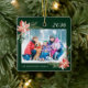 Christmas Family Photo Green Poinsettia Ceramic Ornament