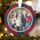 Christmas Family Photo Red and Blue Bufalo Plaid Ornament