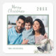 Christmas family photo white green bells square sticker