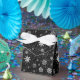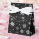 This favour box is shown in a festive Christmas holiday snowflakes print in the colour black.