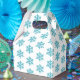 This favour box is shown in a festive Christmas holiday blue snowflakes print.