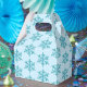 This favour box is shown in a festive Christmas holiday blue snowflake print.