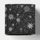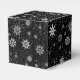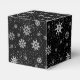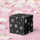 This favour box is shown in a festive Christmas holiday snowflakes print in the colour black.