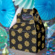 This favour box is shown in a festive Christmas holiday gold snowflakes print.