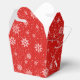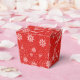 This favour box is shown in a festive Christmas holiday snowflakes print in the colour red.